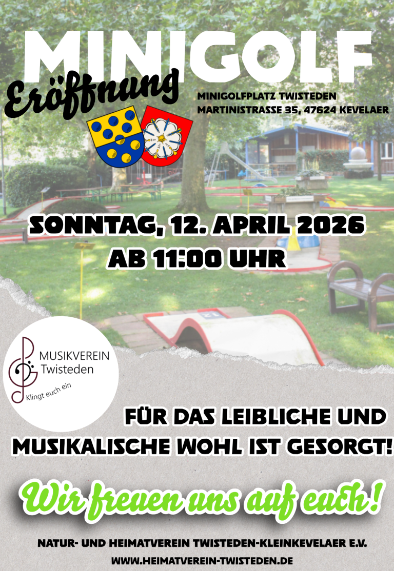 12.04., 11 Uhr Eröffnung der Minigolfsaison mit dem Musikverein Twisteden